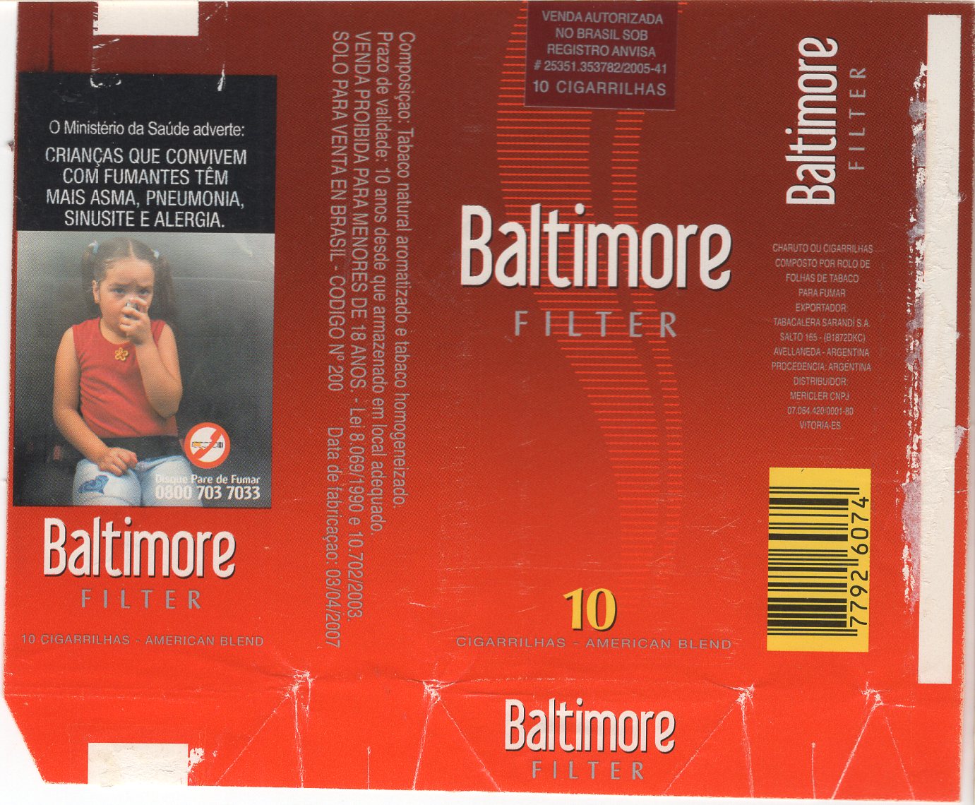 Importada - SF KS - 01 - 10 cigarros - fabricação Argentina - c/b Nos.